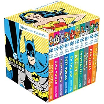 A beautiful keepsake collection of 10 bestselling DC Super Hero concept board books--the perfect gift for super heroes in training.This value gift set includes 10 adorable board books featuring beloved DC super heroes including Superman, Batman, Wonder Woman, Supergirl, Green Lantern, The Flash, and many more! Beautifully illustrated with classic art, each book teaches a different important early concept--from letters and numbers to colors and shapes to opposites and parts of the body. The books are also an ideal introduction to the world of DC super heroes with My First Book of Girl Power and My First Book of Superpowers. Packaged in a gorgeous slipcase (that will look fabulous in any nursery), this is a must-have little library for fans of all ages.