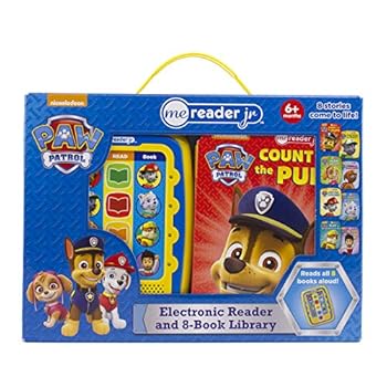 Preschoolers and pre-readers can snuggle up with this PAW-some collection of stories about the PAW patrol. Eight board books come packaged with a Me Reader Jr module that reads each book aloud. Choose a book, press buttons on the module, and hear the whole story, along with fun and surprising sounds! Following along in the book while listening to the narration is an important first step toward independent reading. This Electronic Reader Library is special because: Hands on interaction engages young readers Connecting words with pictures builds vocabulary Multisensory reading experiences stimulate the imaginations of young readers Includes PAW-some characters: Marshall, Chase, Skye, Ryder, Everest, Rubble, Rocky, and Zuma